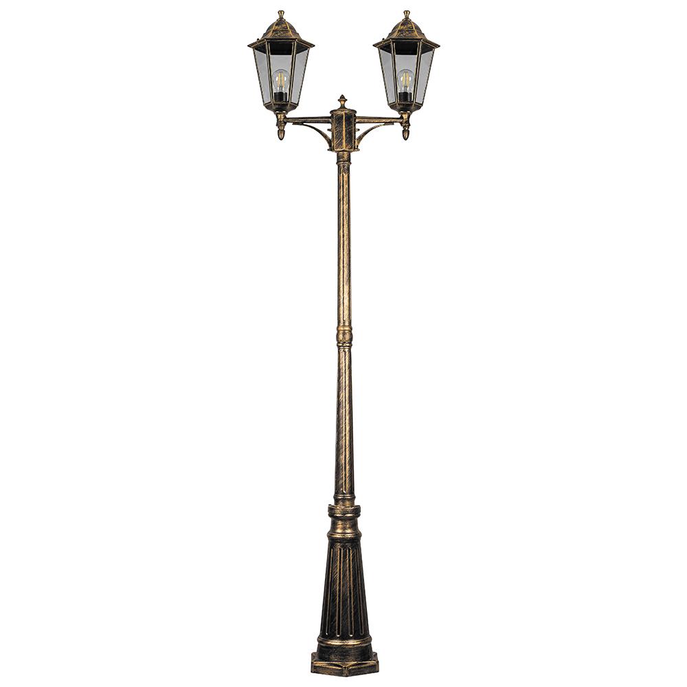 Светильник садово-парковый, серии «Классика», (НТУ) FERON 6211 / PL6211 100W, E27, 230V, IP44, цвет черное золото, 6-и гранник, столб, 220*220*2000мм