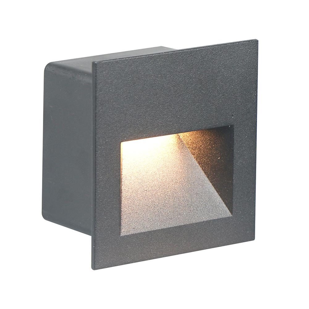 Светильник встраиваемый светодиодный, для лестничной подсветки (ДВУ) FERON LN013-1, 3W 4000К (белый натуральный), 110-265V, 80Lm, IP65, цвет серый, корпус алюминий, пластик, рассеиватель стекло, 86*86*63 мм, монтажн.отв. 68*68 мм.