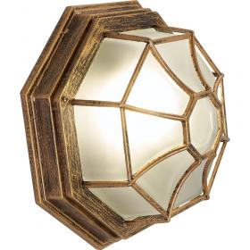 Светильник садово-парковый, серии «Аликанте», (НБУ) FERON PL661 60W, E27, 230V, IP44, цвет черное золото, многогранник, на стену / потолок, 270*270*120мм