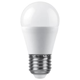 Лампа светодиодная филамент FERON LB-52, G45 (шар малый), 7W 230V E14 6400К (дневной), рассеиватель прозрачный 780Lm, угол рассеивания 270°, 75*45мм