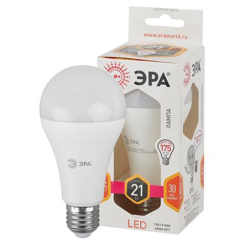 Лампа светодиодная ЭРА STD, 21 (175) Вт, цоколь E27, груша, теплый белый свет, 25000 ч., LED A65-21W-827-E27, Б0035331