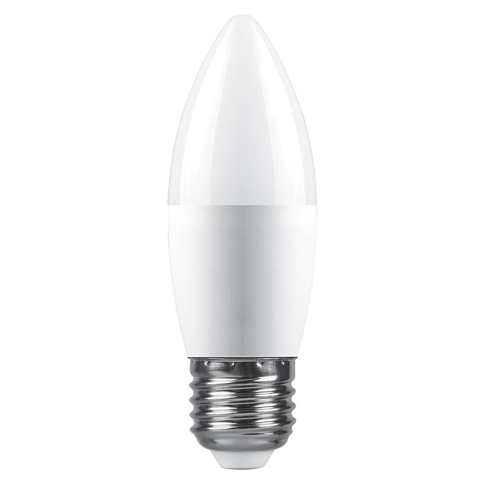 Лампа светодиодная SAFFIT SBC3720, C37 (свеча), 20W 230V E27 6400К (холодный), рассеиватель матовый белый, 1710Lm, угол рассеивания 220°, корпус пластик, 117*39мм
