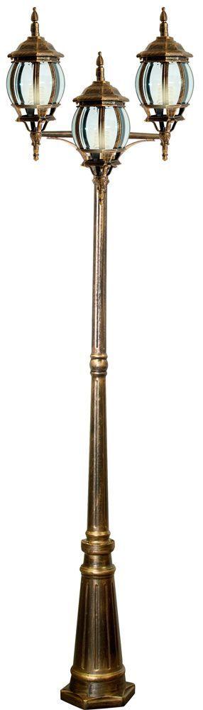 Светильник садово-парковый, серии «Классика», (НТУ) FERON 8115 / PL8115 100W, E27, 230V, IP44, цвет черное золото, 8-и гранник, столб, 400*580*2120мм