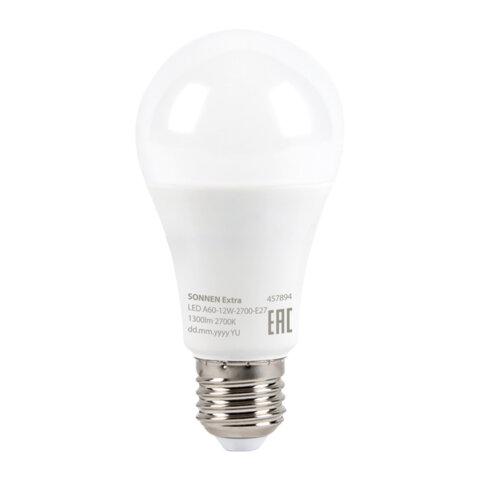 Лампа светодиодная SONNEN EXTRA, 12 (100) Вт, Е27, груша, теплый белый, 30000 ч, LED A60-12W-2700-Е27, 457894