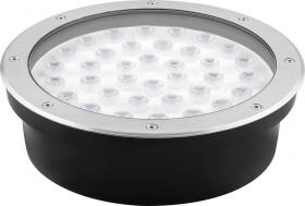 Тротуарный светильник светодиодный, встраиваемый (ДВУ) FERON SP2708, 24W, 2700К (теплый белый), 85-265V / 50Гц, 2000Lm, IP67, угол рассеивания 24°, 24LED*SMD, класс защиты 1, цвет металлик, корпус алюминий, 250*250*90мм, D внутр. 224мм