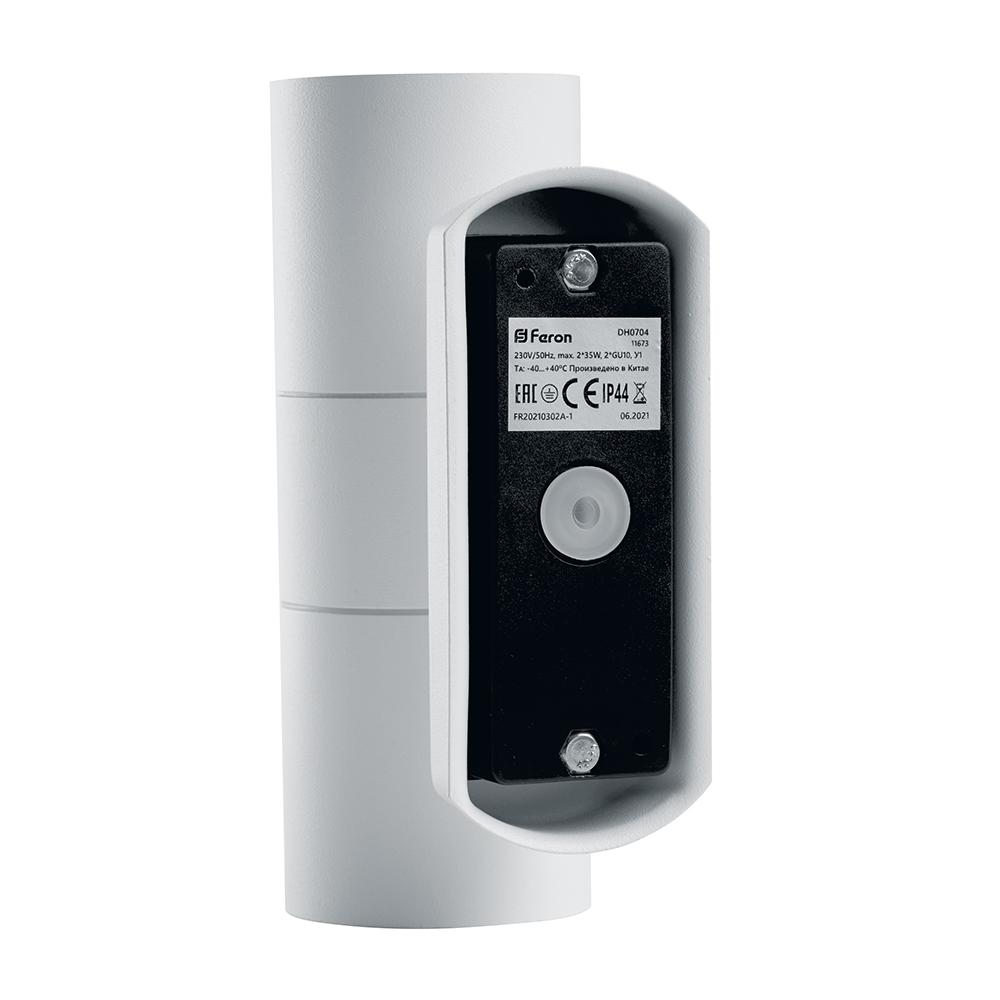 Светильник садово-парковый, серии «Бостон», (ДБУ) FERON DH0704 GU10, 230V, IP54, цвет белый, цилиндр, на стену , 103*60*163мм
