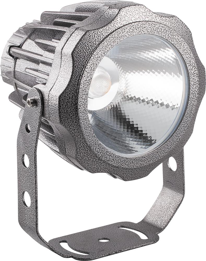 Прожектор ландшафтно-архитектурный светодиодный, на кронштейн (ДДУ) FERON LL-886, 10W, 6400К (холодный белый), 85-265V / 50Гц, 800Lm, IP65, угол рассеивания 15°, 1LED*COB, класс защиты 1, раб.t -40°C...+40°C, цвет металлик, корпус алюминий, 90*90*115мм,