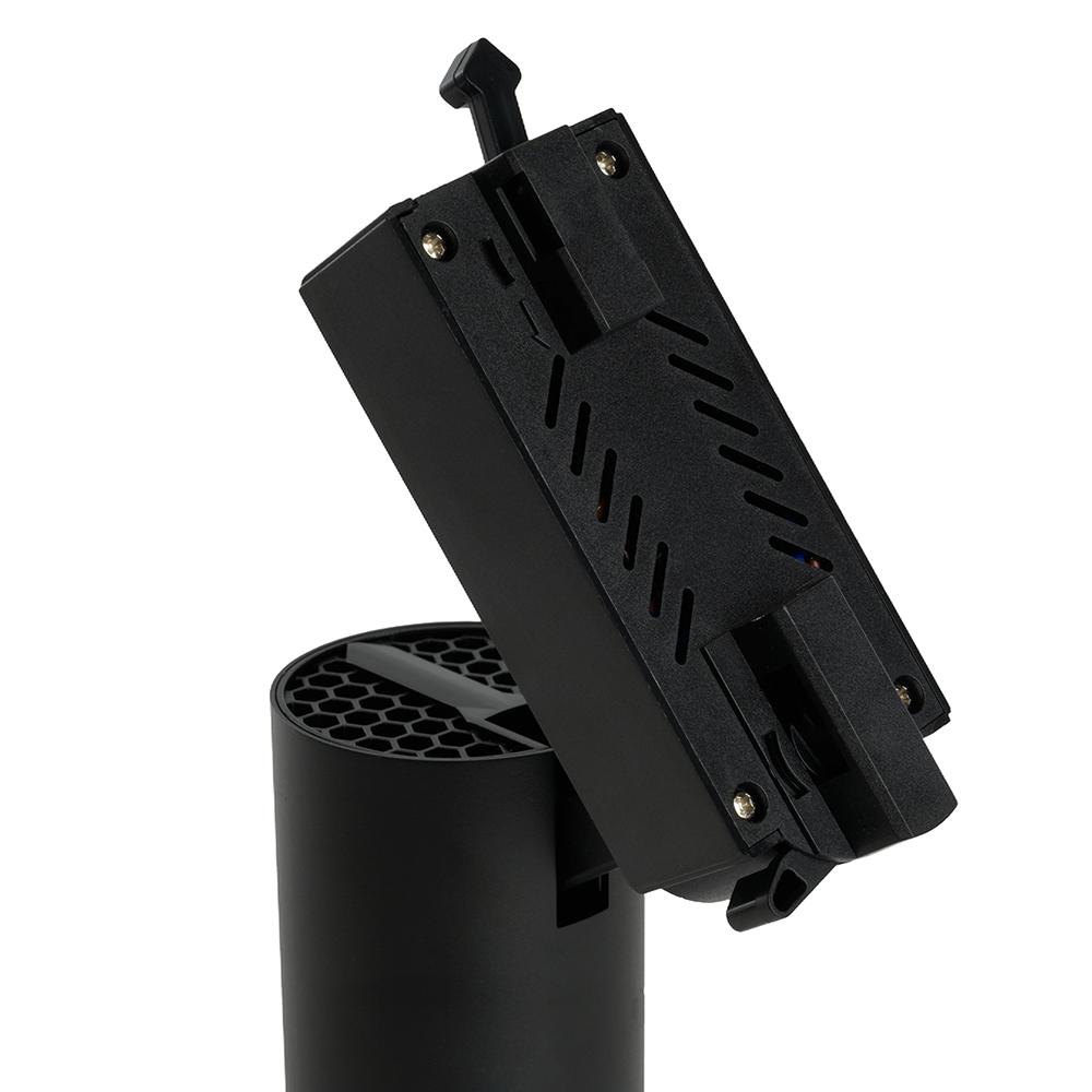 Светильник трековый на шинопровод, однофазный (ДПО) FERON AL137, 20W, 4000К (белый), 170-265V, 1400Lm, цвет черный, корпус алюминий, рассеиватель поликарбонат, вращение →350° / ↓90°, 150*65*150 мм