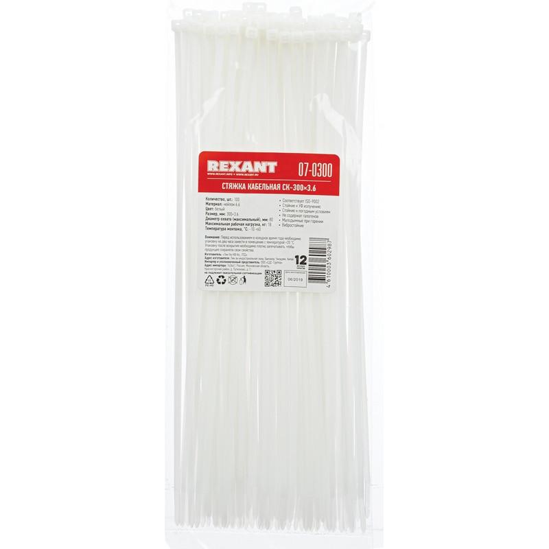 07-0300 Стяжки кабельные Rexant нейлоновые 4.0 х 300 мм белые 100 шт