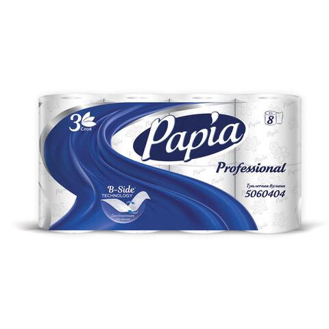 Бумага туалетная, спайка 8 шт., 3-слойная (8х16,5 м) Papia Professional, белая, 5080998