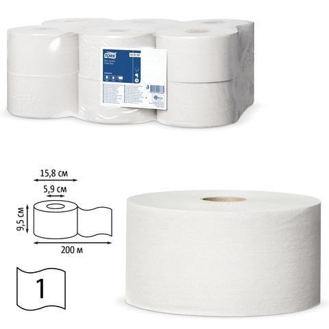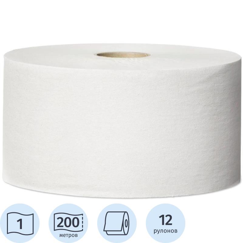 Бумага туалетная 200 метров, Tellus / TORK (Система T2) UNIVERSAL, 1-слойная, КОМПЛЕКТ 12 рулонов, 120197
