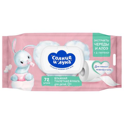 Бумага туалетная влажная детская 72 шт., СОЛНЦЕ И ЛУНА с экстрактом череды, крышка клапан, 14123