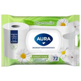 Бумага туалетная влажная смываемая 72 шт., AURA, с пластиковым клапаном, 13091
