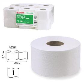 Бумага туалетная 200 м, LAIMA (T2), ADVANCED, 1-слойная, цвет белый, КОМПЛЕКТ 12 рулонов, 126093