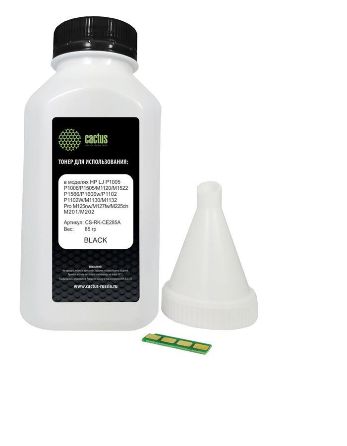 Тонер Cactus CS-RK-CE285A, CE285A, черный флакон 85гр .(вкомпл.:чип) для принтера HP LJP 1005 / M1120 / P1606w;ProM125nw