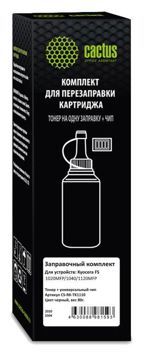 Тонер Cactus CS-RK-TK1110 черный флакон 80гр. (в компл.:чип) для принтера Kyocera FS-1020 / 1040 / 1120