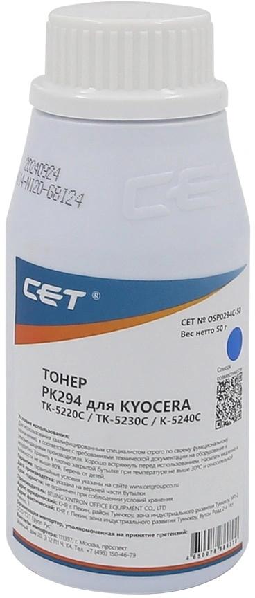Тонер Cet PK294 OSP0294C-50 голубой бутылка 50гр. для принтера KYOCERA ECOSYS M5521cdn / M5526cdw / M6630cidn / P5021cdn / P5026cdn / P6230cdn