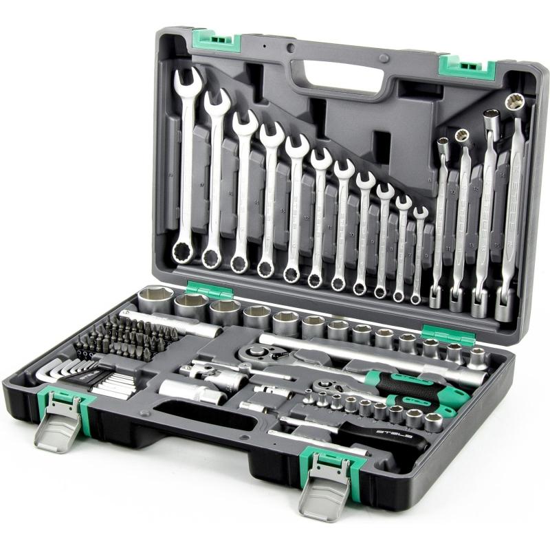 Набор инструментов Stels 14106 / 94 предмета / 1 / 2", 1 / 4", CrV / пластиковый кейс / черно-серый (14106)