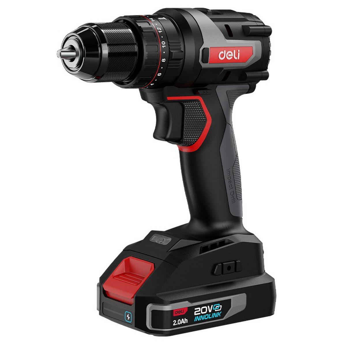 Дрель-шуруповерт аккумуляторная ударная Deli DE-CZ20-2D2 (2 АКБ*2Ач+ЗУ, 20В, 10мм, 50Нм, сумка)