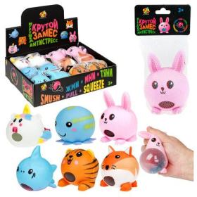 Игрушка-антистресс "Крутой замес. Животное со жмякой внутри" 10х8 см, ассорти, 6 видов, 1TOY, Т26169