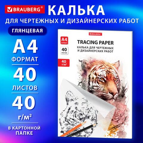 Калька для чертежных и дизайнерских работ папка, А4, 210х297 мм, 40 г / м2, 40 листов, BRAUBERG, 116375
