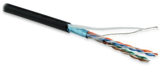 Hyperline FUTP4-C5E-S24-OUT-LSZH-BK-500 (500 м) Кабель витая пара экранированный F / UTP общий экран фольга категория 5e 4 пары 24 AWG 4х2х051 мм однопроволочные жилы LSZH нг(А)-HF внешний -40°C – +75°C черный