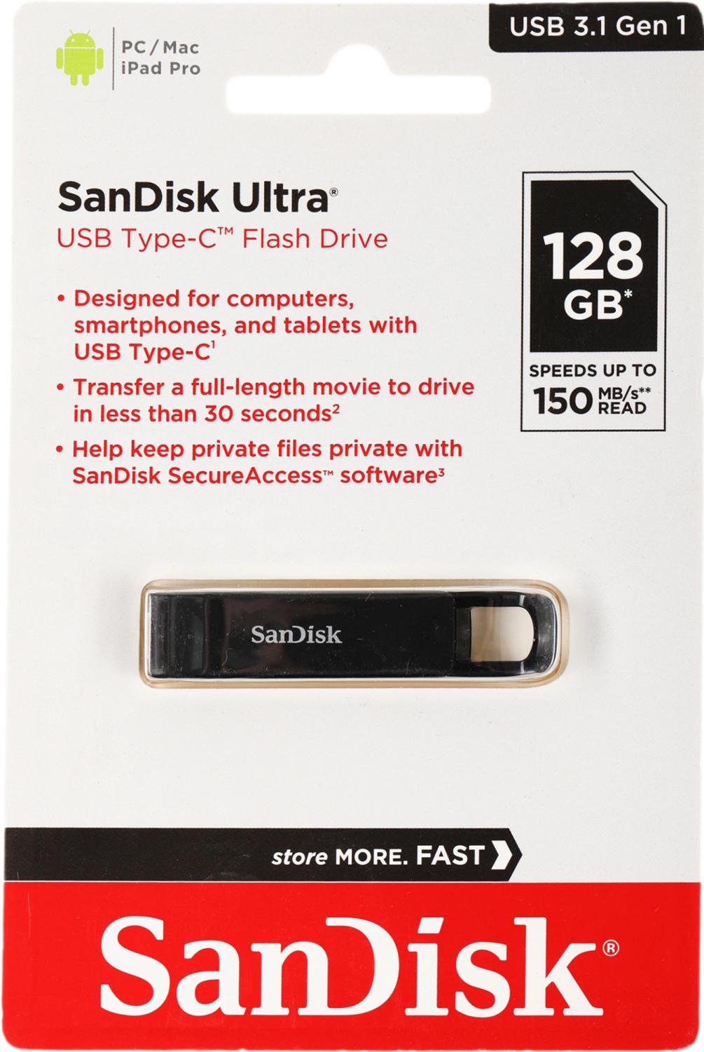 САН-ДИСК_НАКОПИТЕЛЬ 64GB USB SanDisk Ultra разъемы USB3.0 Type C и USB 3.0 сер