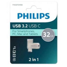 PHILIPS USB Drive 32Gb PHILIPS 2-in-1 USB 3.2 USB C, OTG, USB 3.2 / Type-C, Металл, 100 MB / s