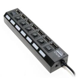 HUB 7-port 5bites HB27-203PBK Black USB 2.0 с блоком питания 2A, индивидуальные выключатели