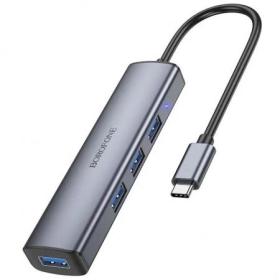 HUB 4-port Borofone DH12, USB 3.0, кабель Type C, серый