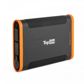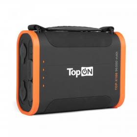 Внешний аккумулятор TopON TOP-X38 38000mAh 3 USB-порта, автомобильная розетка 12V 15A 180W, аварийный свет, фонарь, защита от пыли и брызг. Черный