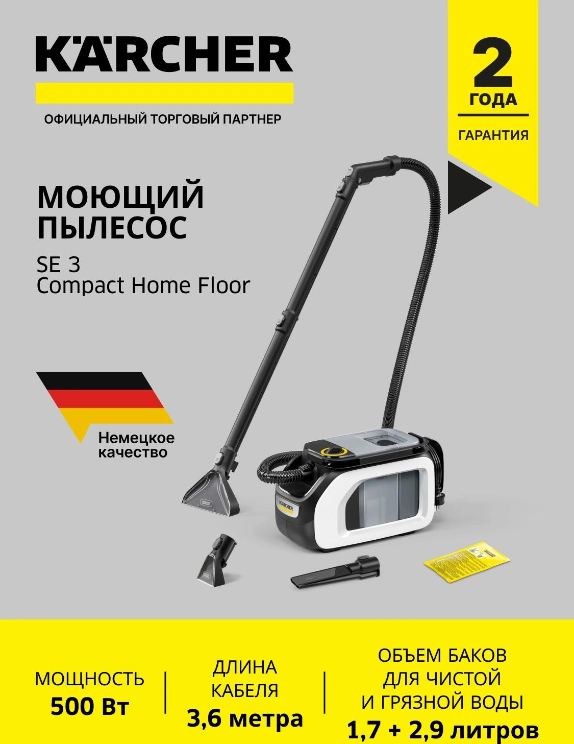 Пылесос моющий Karcher SE 3 Compact Home Floor 500Вт белый / черный