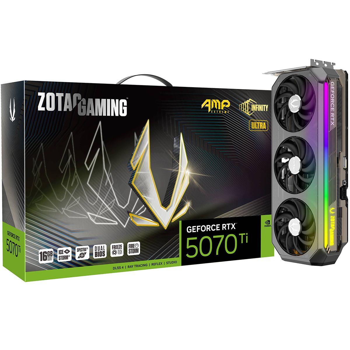 Видеокарта Zotac PCI-E 5.0 RTX 5070TI AMP EXTREME INFINITY ULTRA NVIDIA GeForce RTX 5070TI 16Gb 256bit GDDR7 2572 / 28000 HDMIx1 DPx3 HDCP Ret