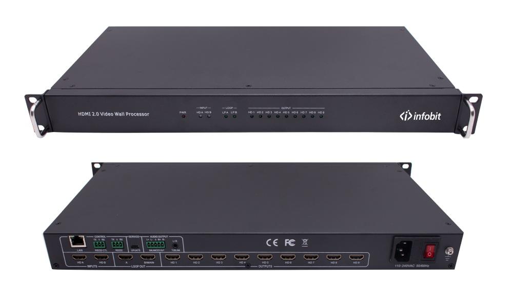 Контроллер видеостены 4K60 HDMI Infobit [iWall 209], 2 входа HDMI, 9 выходов HDMI, с режимом матрицы.