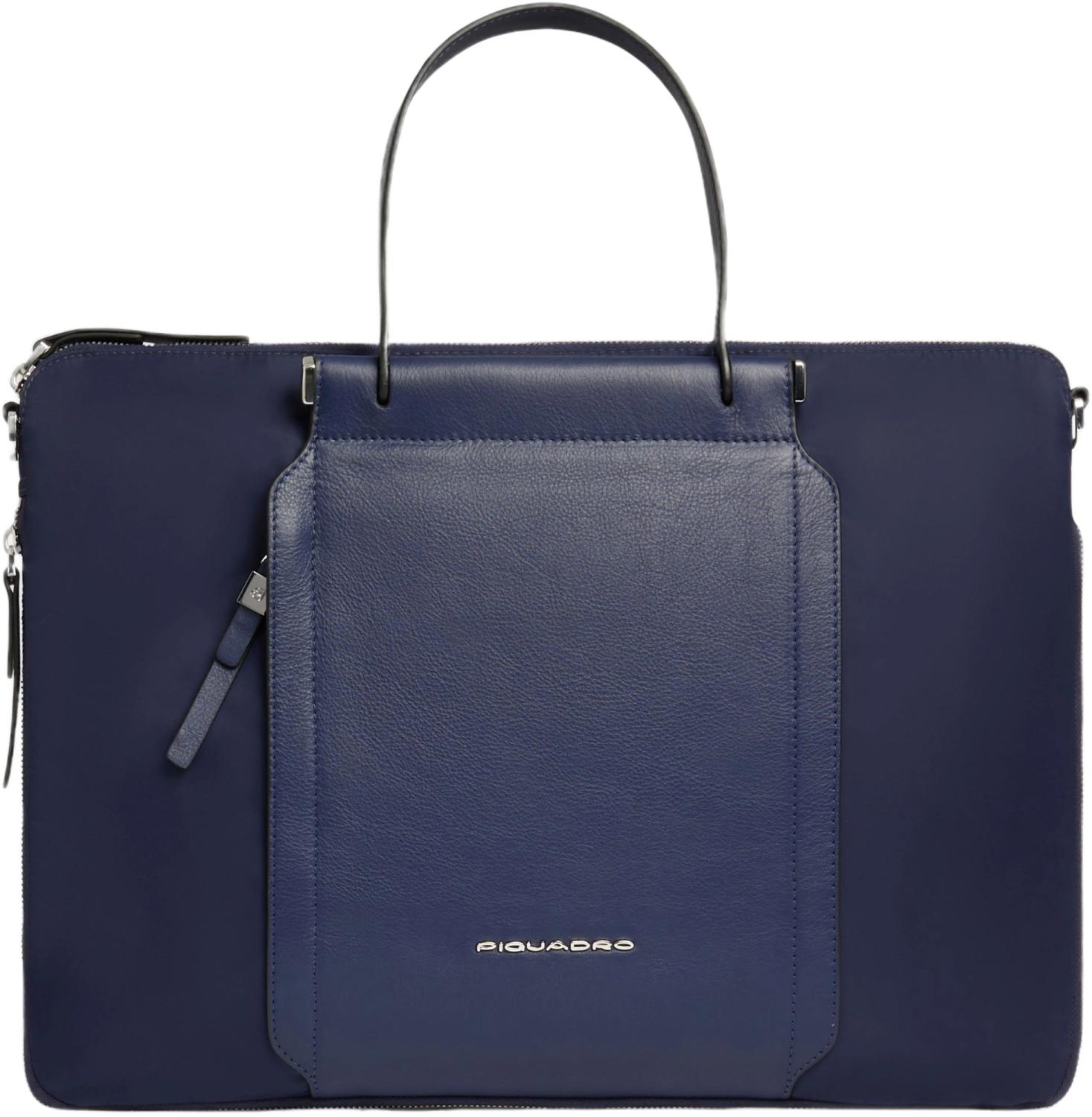 Деловая сумка женская Piquadro Lyra CA4021W92T / BLU с отделением для ноутбука 15.6" темно-синяя ткань / натур.кожа