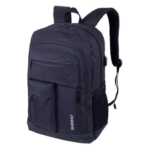 Рюкзак HEIKKI HIGH TECH (ХЕЙКИ) с отделением для ноутбука, USB-порт, черный, 46x30x10 см, 272588