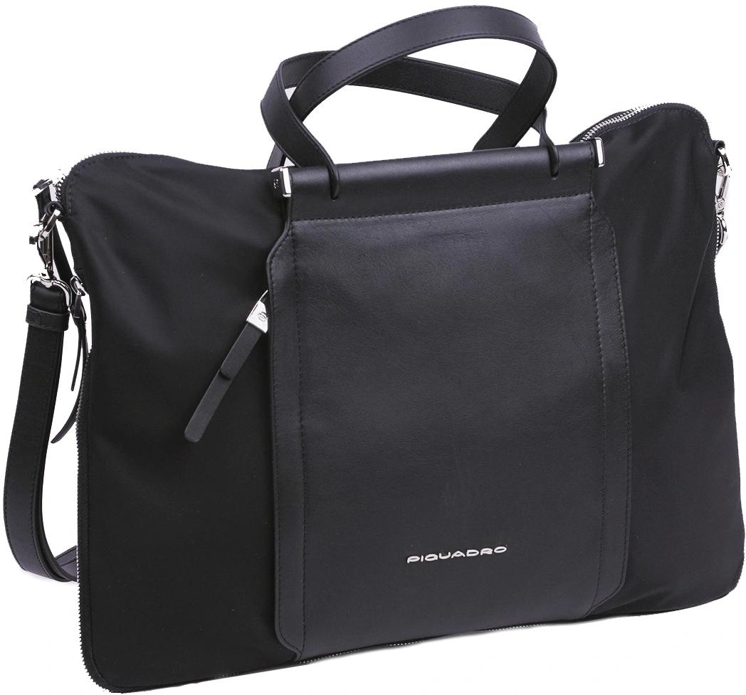 Деловая сумка женская Piquadro Lyra CA4021W92T / N с отделением для ноутбука 15.6" черная ткань / натур.кожа