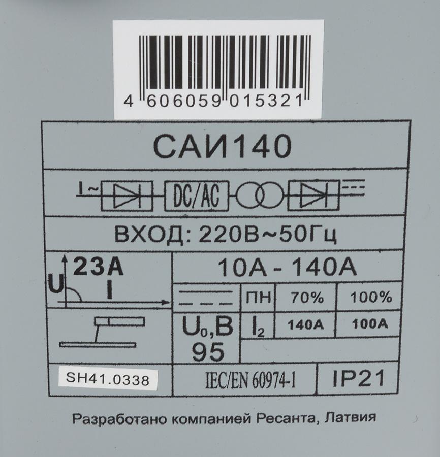 Сварочный аппарат Ресанта САИ-140 инвертор ММА DC 5.9кВт