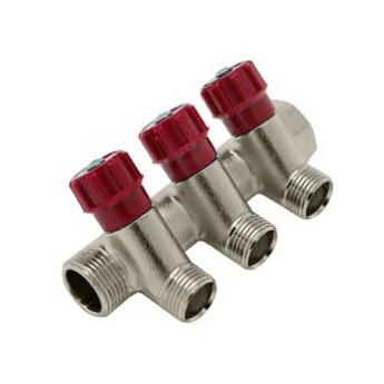 Коллектор с краном ST SM-8043R 3 / 4" F-Mх(3 x1 / 2") латунь (красный маховик)