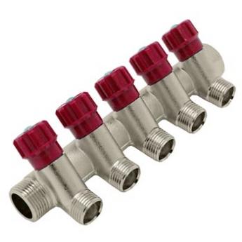 Коллектор с краном ST SM-8045R 3 / 4" F-Mх(5 x1 / 2") латунь (красный маховик)