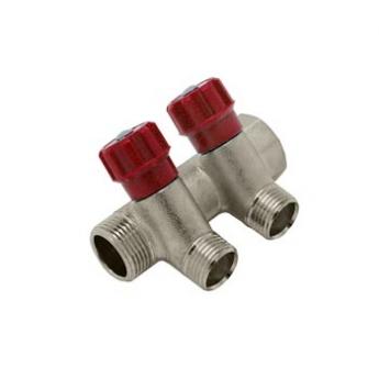 Коллектор с краном ST SM-8042R 3 / 4" F-Mх(2 x1 / 2") латунь (красный маховик)