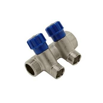 Коллектор с краном ST SM-8042B 3 / 4" F-Mх(2 x1 / 2") латунь (синий маховик)