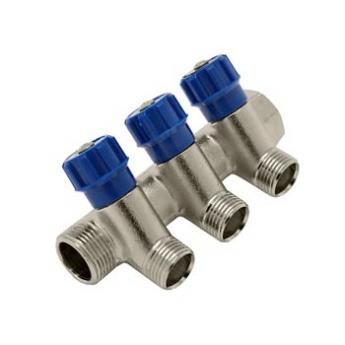 Коллектор с краном ST SM-8043B 3 / 4" F-Mх(3 x1 / 2") латунь (синий маховик)