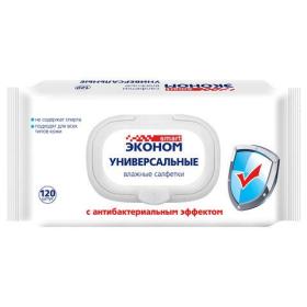Салфетки влажные 120 шт, ЭКОНОМ SMART, антибактериальные, крышка клапан, ш / к 06482, 30648