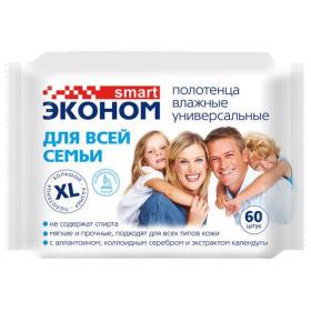 Полотенца влажные XL 60 шт, 18х27см, ЭКОНОМ SMART, с аллантоином и коллоидным серебро, 80228