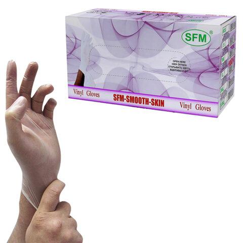 Перчатки виниловые смотровые 50 пар (100 штук), размер 7-8, M (средний), прозрачные, SFM, Германия