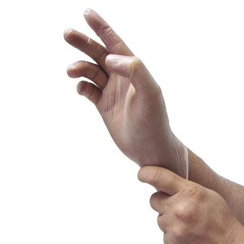 Перчатки виниловые смотровые 50 пар (100 штук), размер 8-9, L (большой), прозрачные SAF&TY