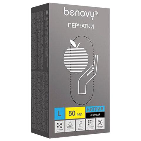 Перчатки нитриловые смотровые 50 пар (100 штук), размер 8-9, L (большой), черные, BENOVY MultiColor, К