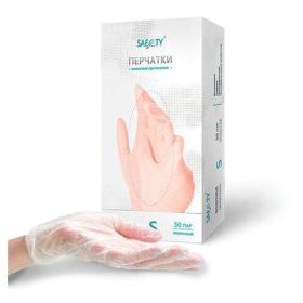 Перчатки виниловые смотровые 50 пар (100 штук), размер 6-7, S (малый), прозрачные SAF&TY