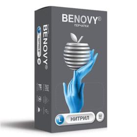 Перчатки нитриловые смотровые 50 пар (100 штук), размер 8-9, L (большой), голубые, BENOVY Nitrile Chlorinated, К